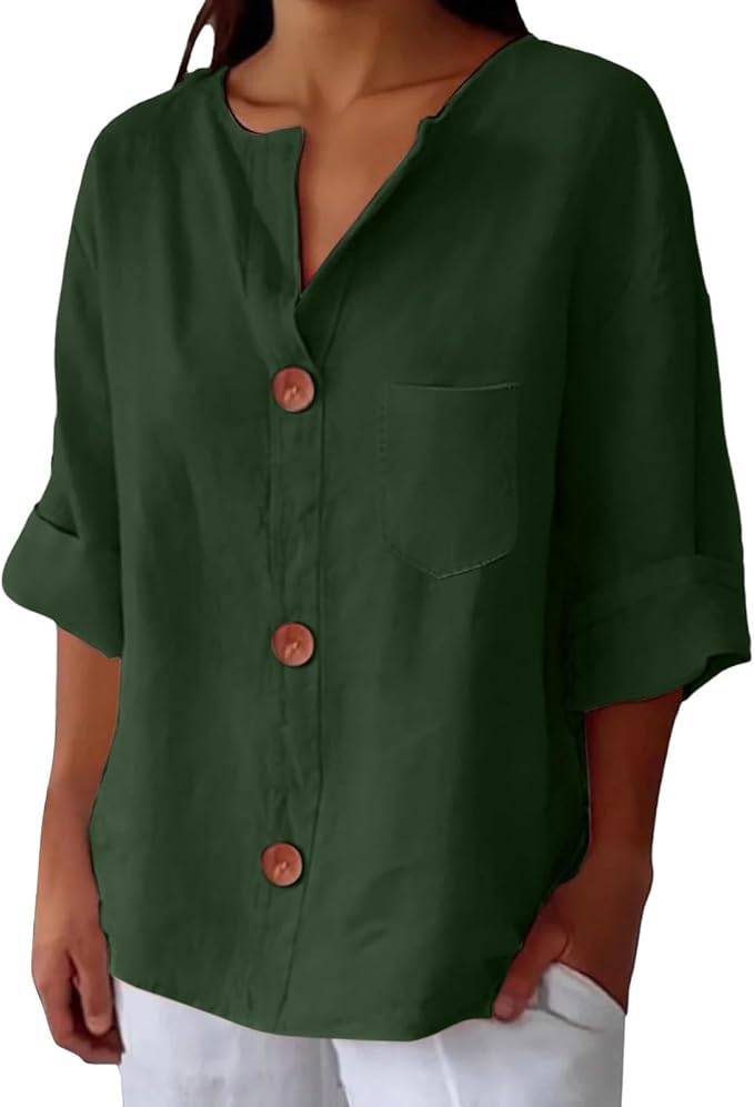 Erleben Sie mühelos die Eleganz der Bluse Hristina – leicht, luftig und für puren Komfort entworfen. Hergestellt aus 100 % natürlichem Leinen, hält sie Sie an heißen Tagen kühl und selbstbewusst, während sie Ihre Figur mit ihrem entspannten Schnitt betont.